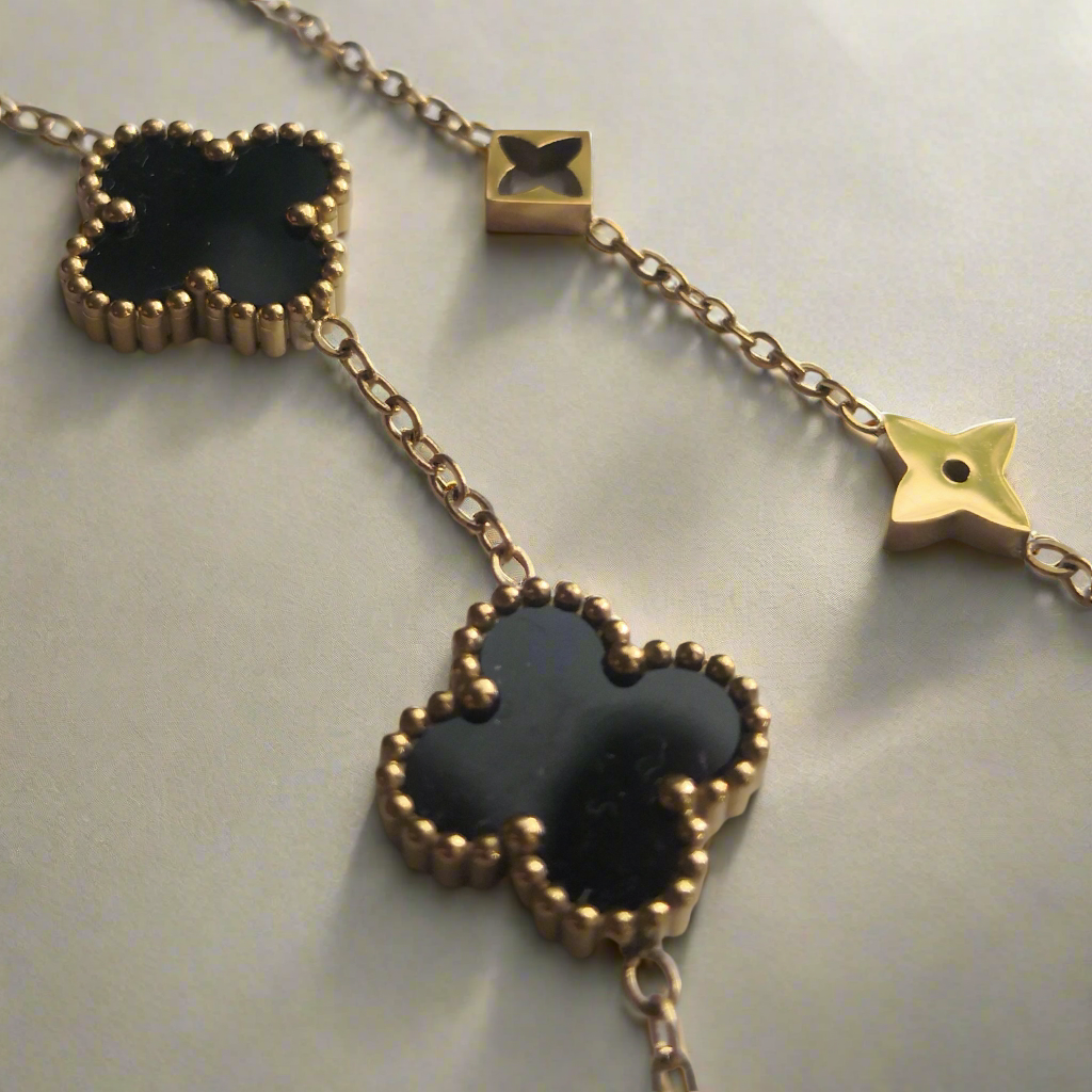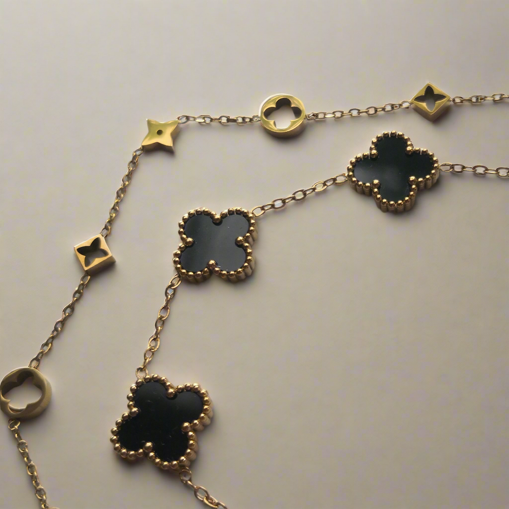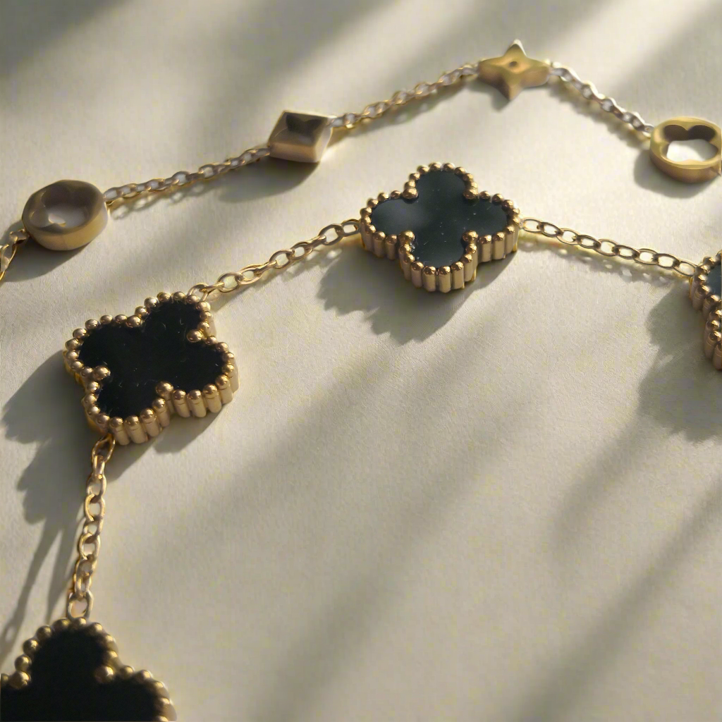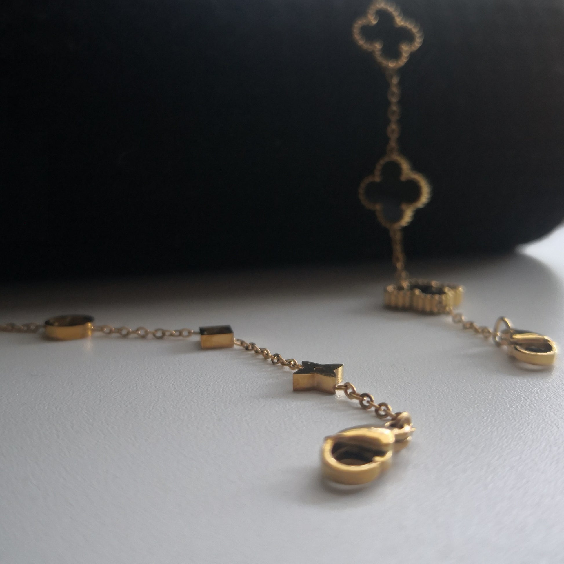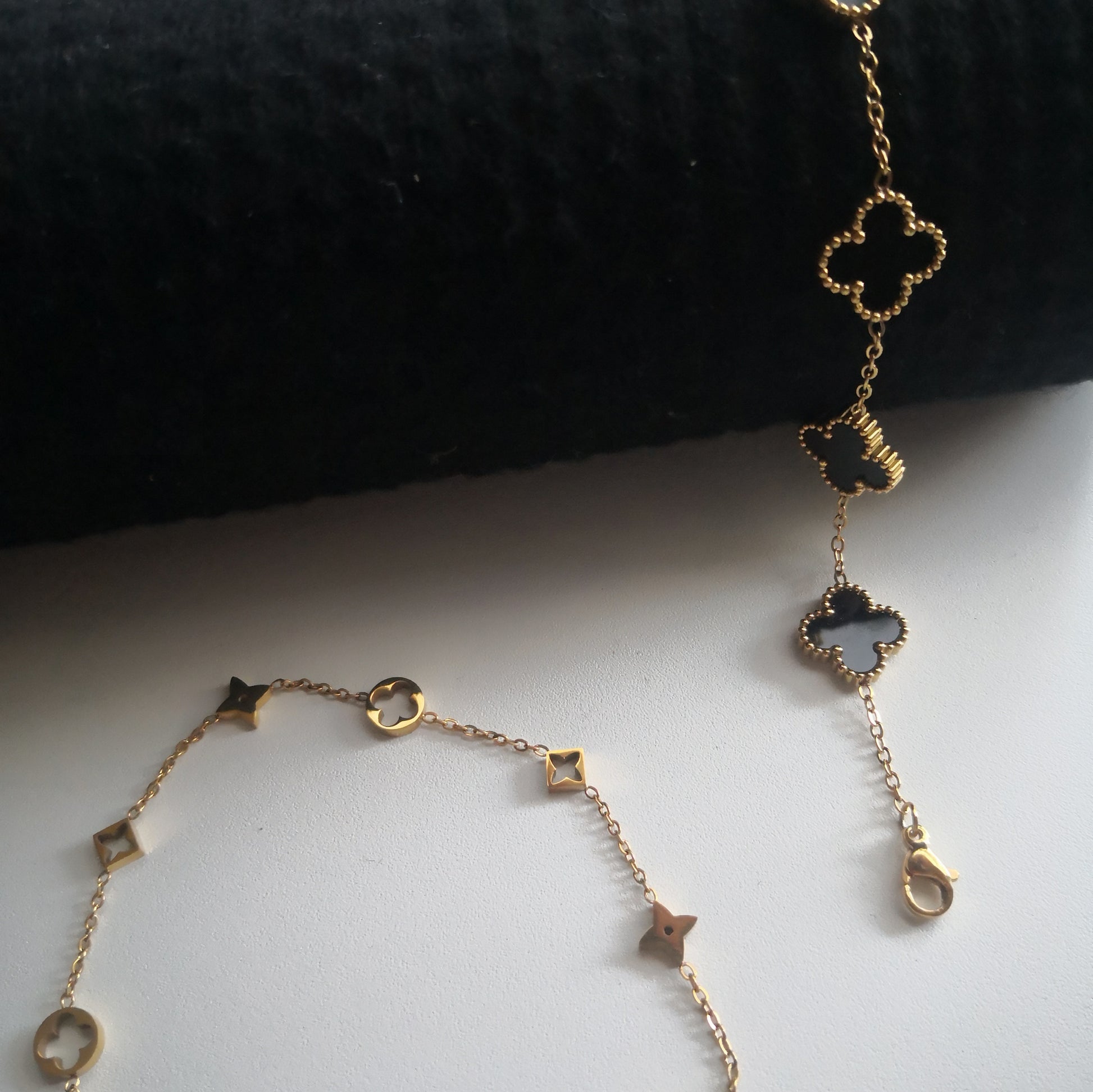 - سوار البرسيم: تصميم أنيق مع قلادات البرسيم محاطة بحواف ذهبية دقيقة.