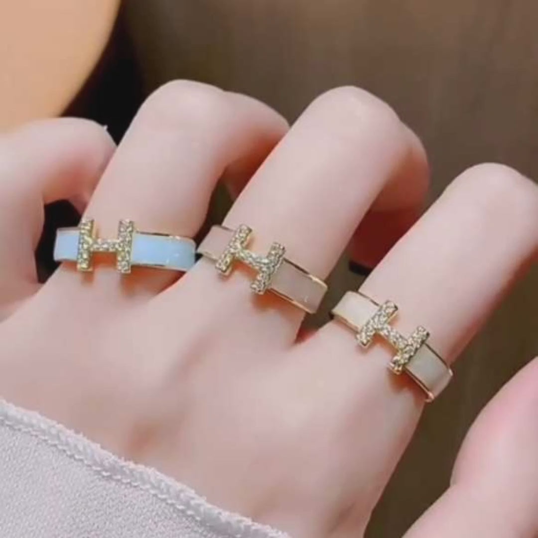 Deze elegante ring met de letter H is beschikbaar in drie prachtige kleuren: wit, blauw en beige, alle met een gepolijste en glanzende afwerking.